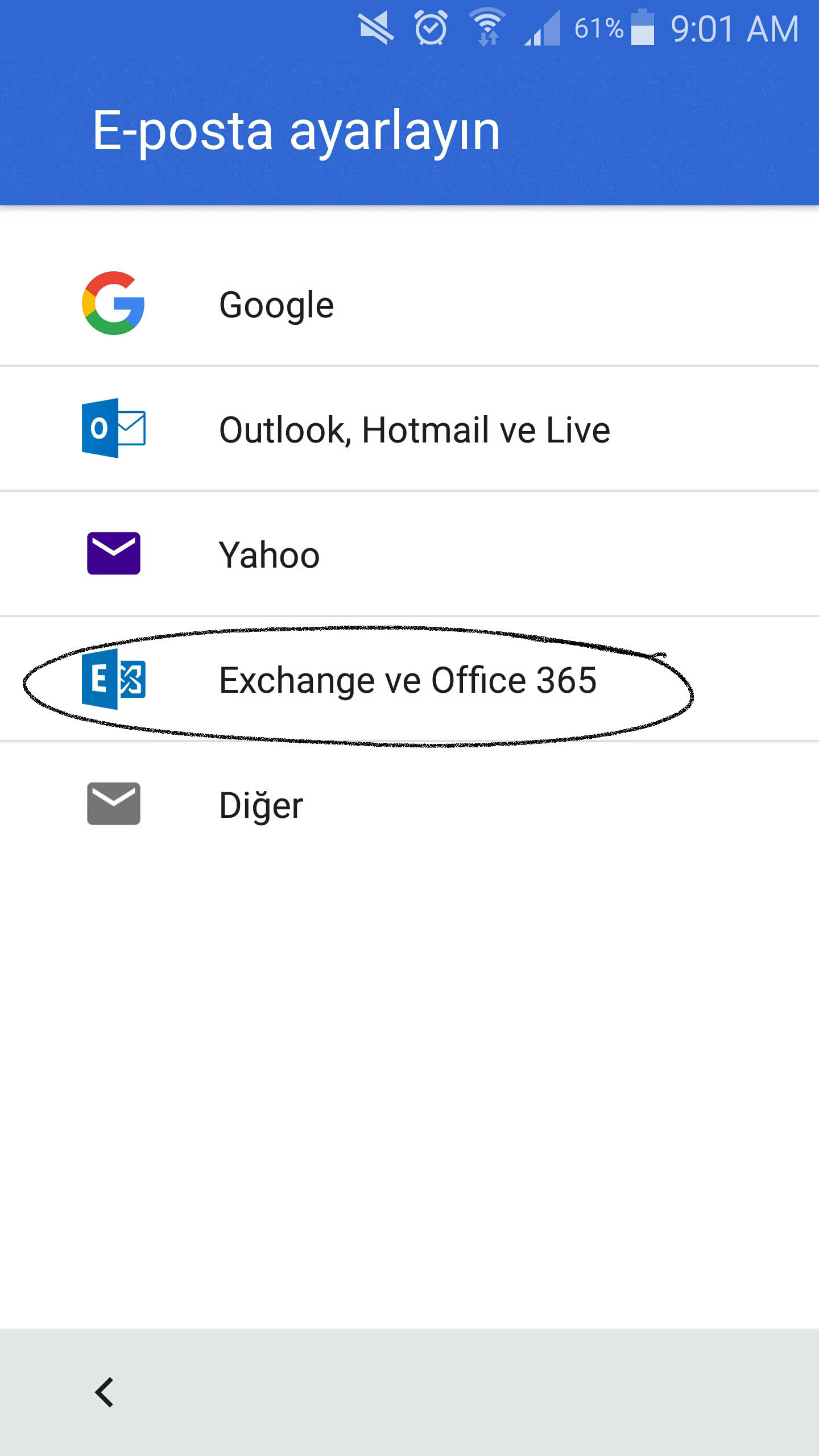 Exchange Posta türünü seçiyoruz