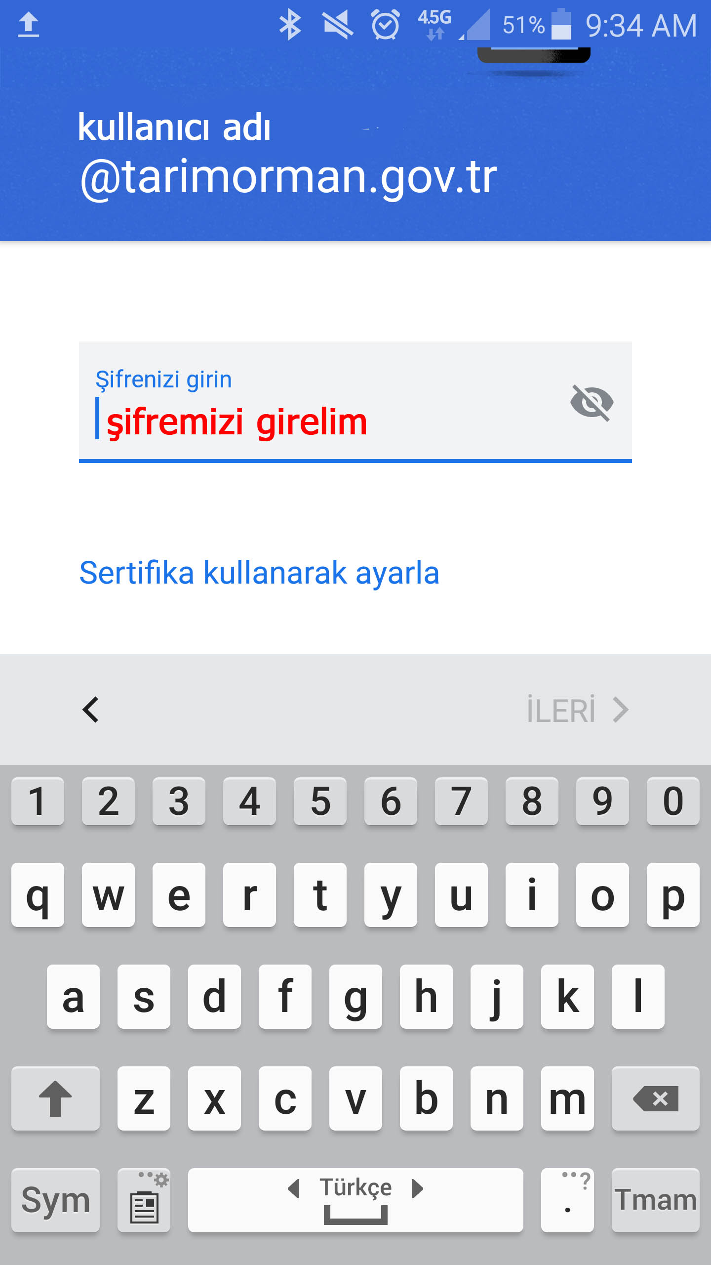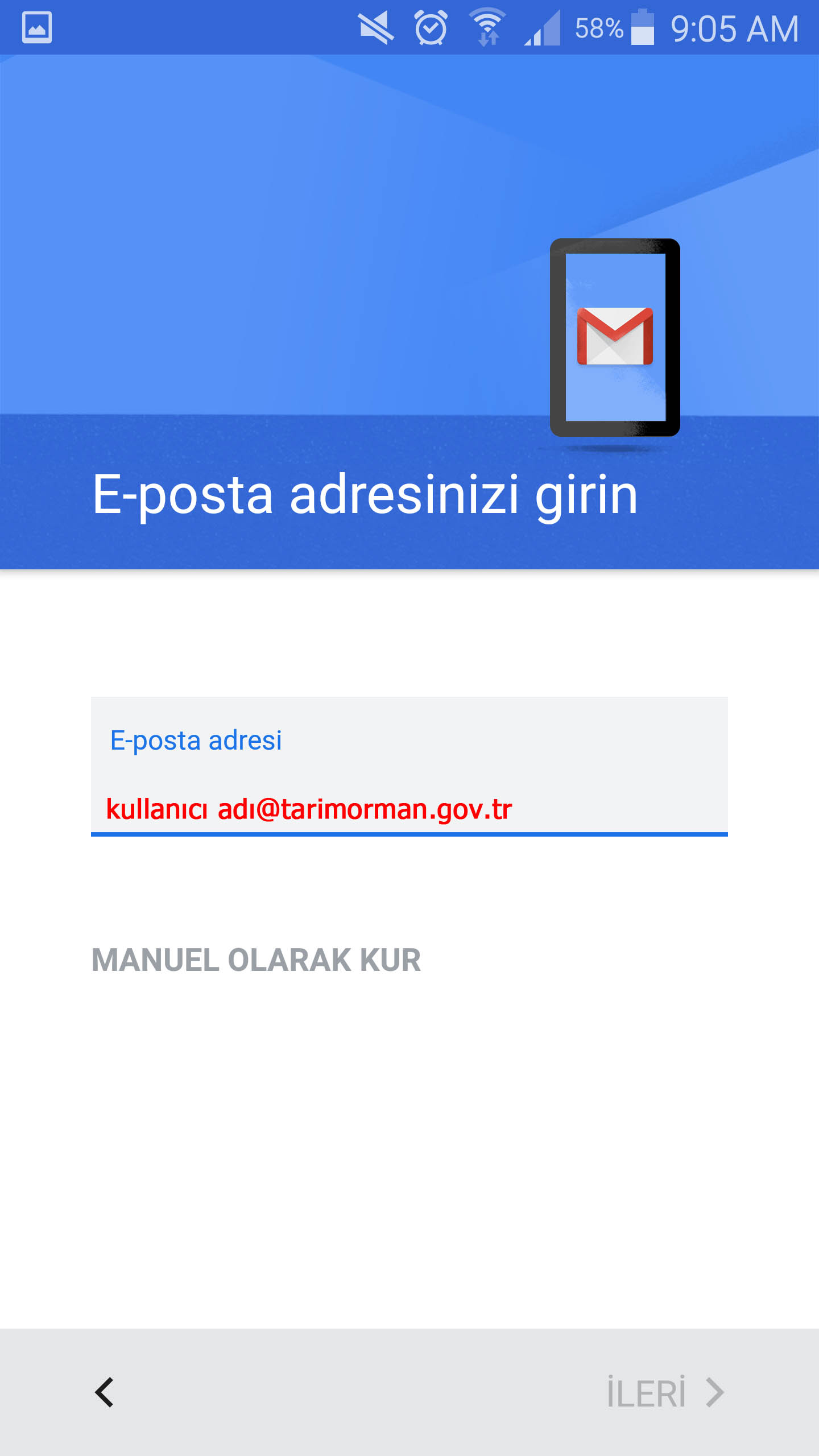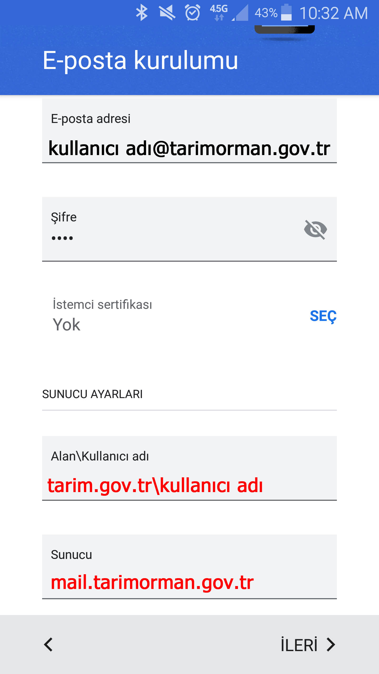 Bu kısın Bakanlığımızın tanımladığı mail hesabını @tarimorman.gov.tr dahil yazıyoruz.